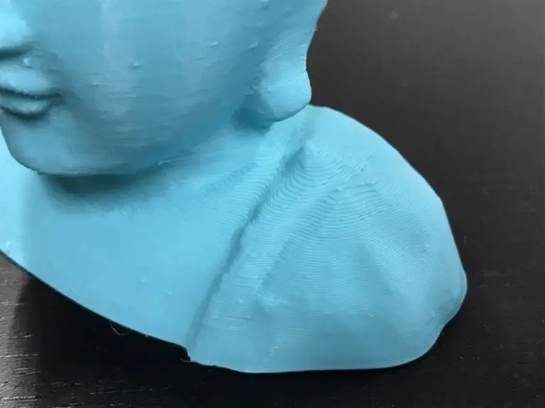 顔全体の表面はうっすらと開始点のバリや積層痕が見えますが、鼻や口元の積層がほとんど目立たなくなっているのが分かります。