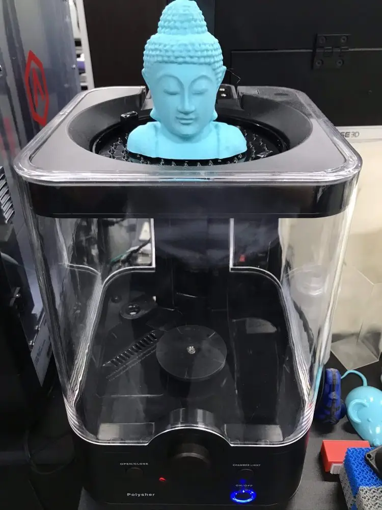 Polysherをかけた直後は造形物の表面がIPAによって薄く溶けたPolysmoothが残っている為、なるべく造形物には触れずに十分に乾燥するまで待つ必要があります。