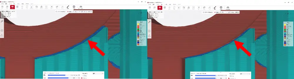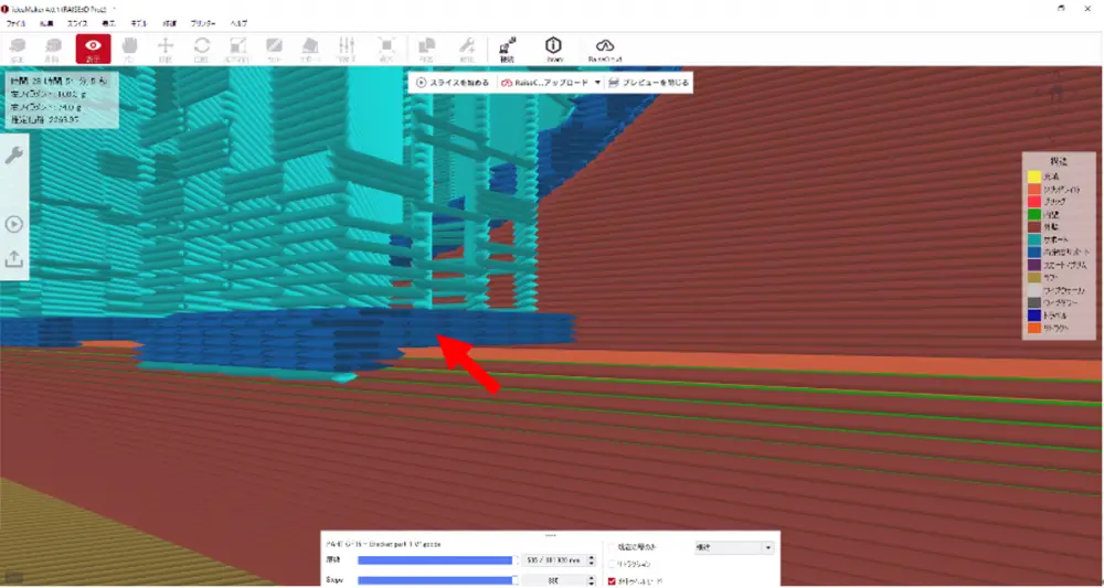 水溶性サポートを使用する際は赤枠で囲んだ部分を主に調整して造形します。