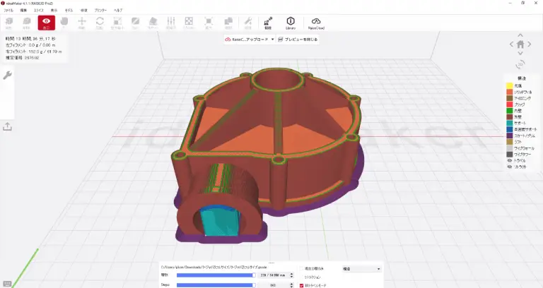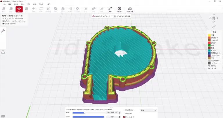 造形物の輪郭に沿って重ねて描く「ブリム(紫の部分)」と呼ばれる設定はPPの反りと安定性を高めるのに重宝する設定です。