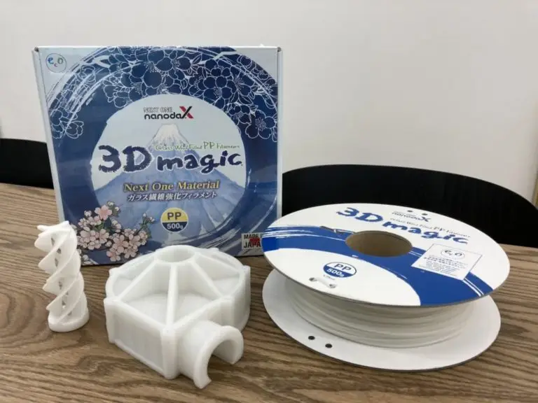 そこで日本の樹脂メーカーであるナノダックス株式会社はPPの中にグラスファイバーよりも極細なグラスウール充填することでPPの収縮を抑えた世界初の国産3Dプリンター用PPフィラメント「3D magic」を製品化しました。