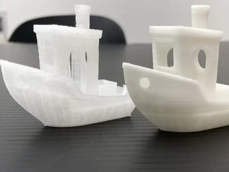 ナチュラルPPで造形したボートと比較して、ブリッジの部分も垂れることなく綺麗に造形できています。煙突部分も歪みがありません。