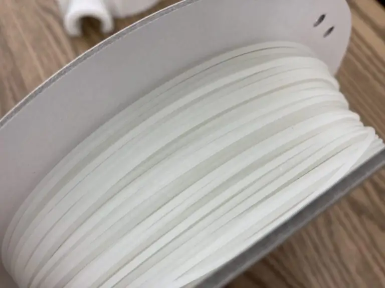 3D magicは無色透明なナチュラルPPに比べて乳白色の様な半透明でフィラメントの表面はグラスウールによってザラザラした質感になっています。