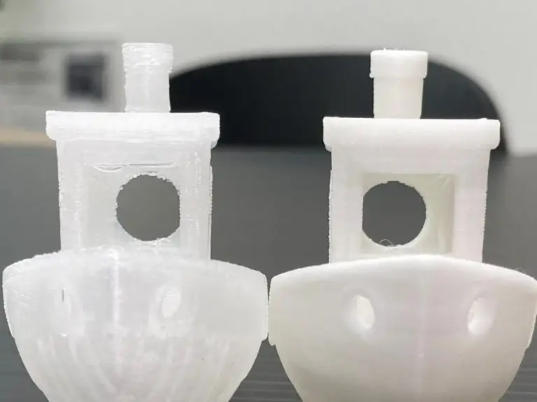 3Dmagicの方が綺麗に見えますが、BASF PPは3Dmagicよりもクリアなので内部充填が透けて見えてしまっているだけで、指で触った感じでは積層が荒れていることはありませんでした。もう少しオーバーハングのある造形で大きく差が表れそうですね。