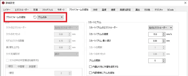 ブリムの設定はideaMakerの「プラットフォームの追加」で選択ができます。