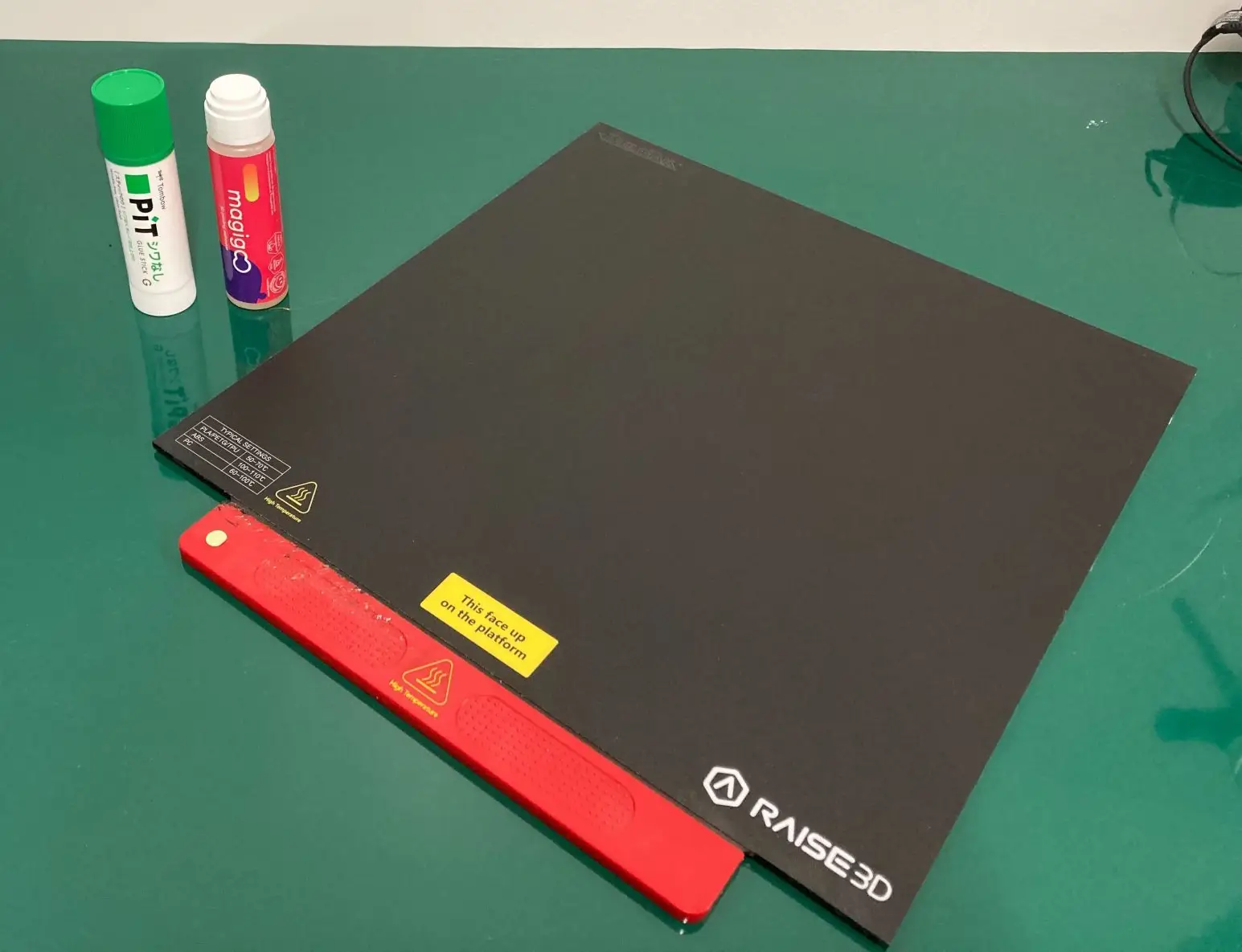 本来はプリントベッドから造形物が反りによって剥がれるのを抑える為の道具ですが、ABSやPC、TPUフィラメントはビルドサーフェスへの定着が強く剥がれないことが多い為、サーフェスの表面にコーティングすることである程度の定着力を維持したまま造形物が剥がしやすくなる効果が見込めます。