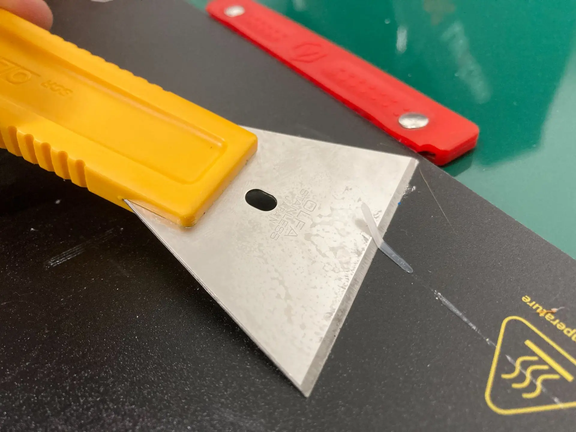 特に素手では取れないプリントベッド上に小さく固着した樹脂を削ぎ落す際にも活躍します。