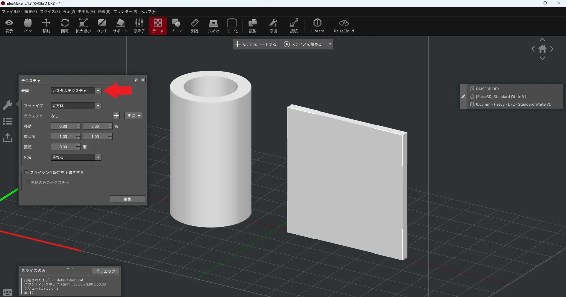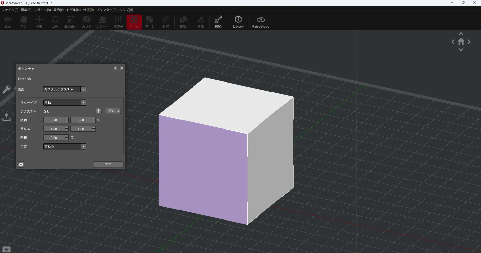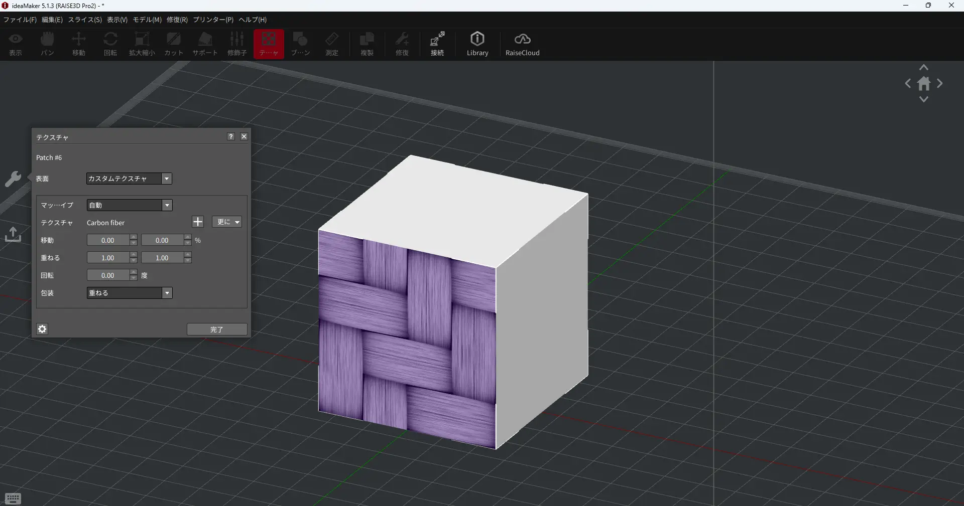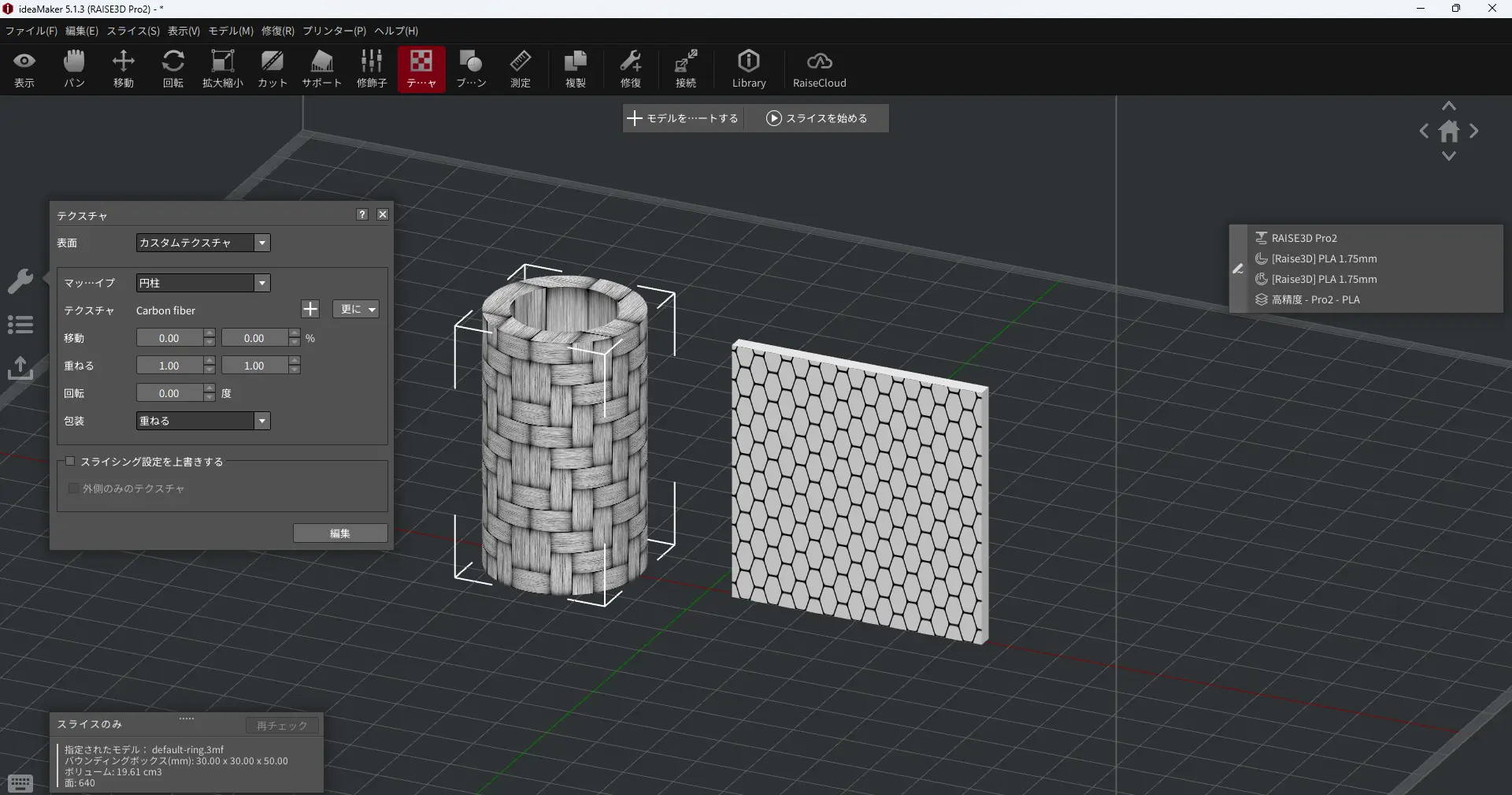 Raise3DのideaMakerには以前より既存の3Dモデルにテクスチャと呼ばれる模様を表面に追加する機能があります。