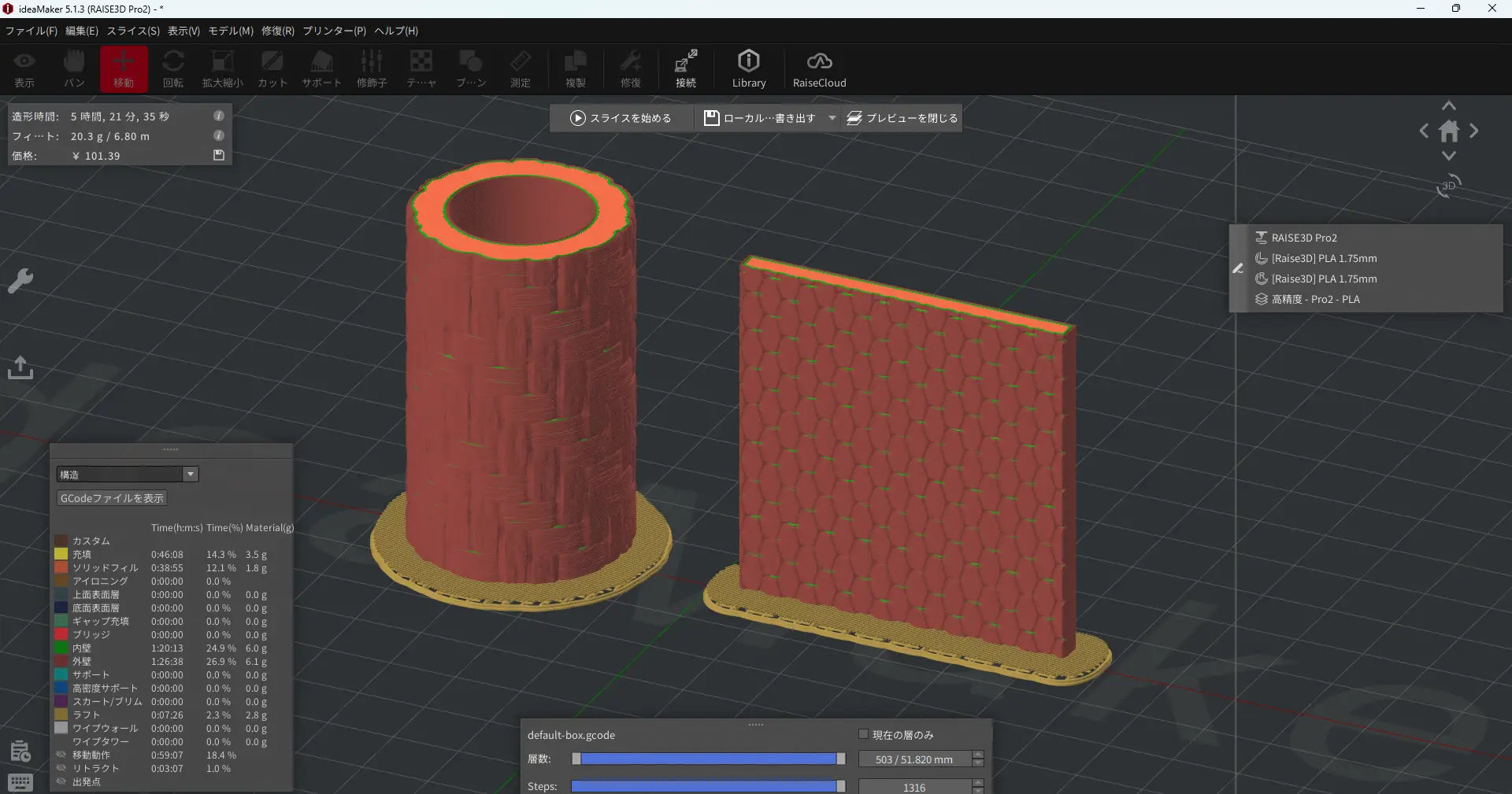 3DプリンターはRaise3D Pro2(販売終了。後継機:Pro3 HSシリーズ)で造形しました。