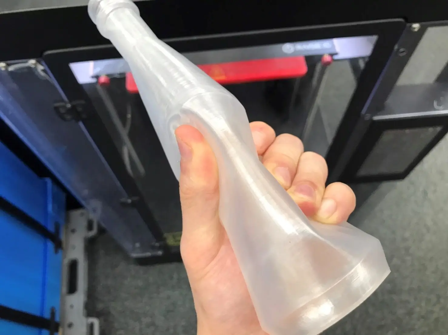 今回は薄壁のボトル形状を造形しましたがPPは耐薬品性に優れていることから攪拌用の