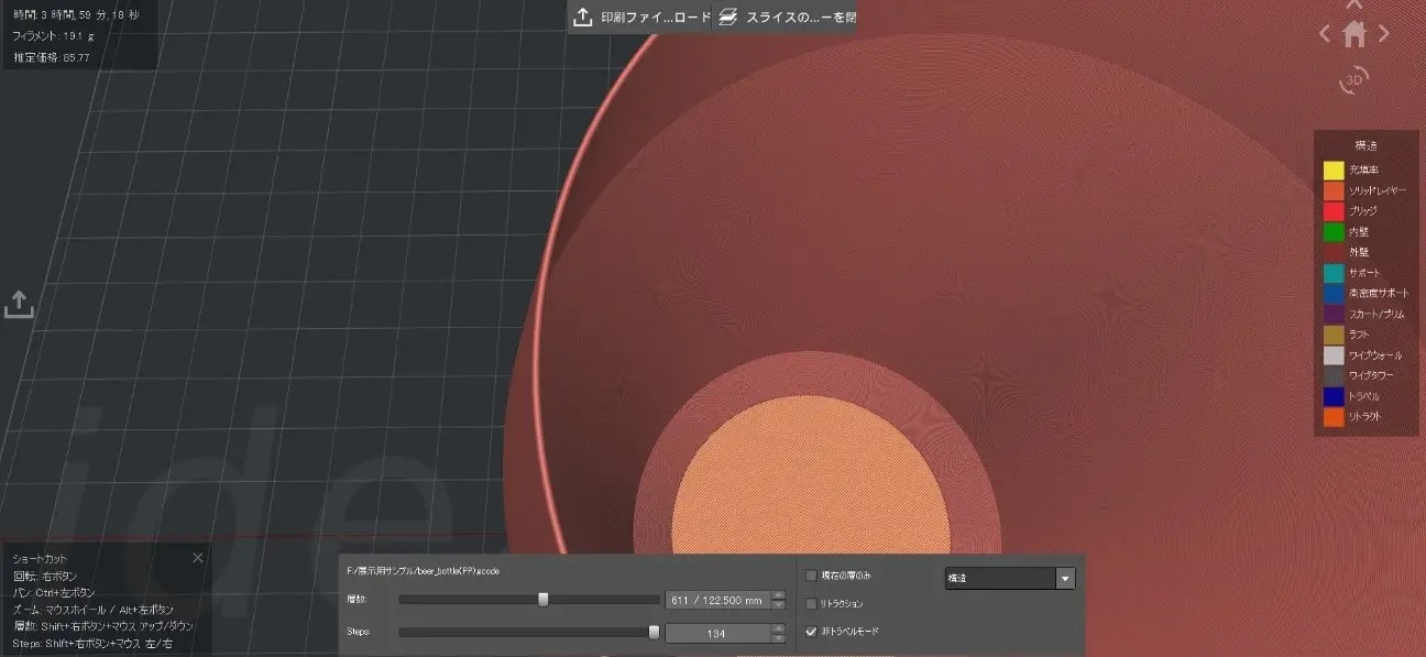 スパイラルベースモードは名前の通り螺旋軌道の一筆書きで造形していくため、