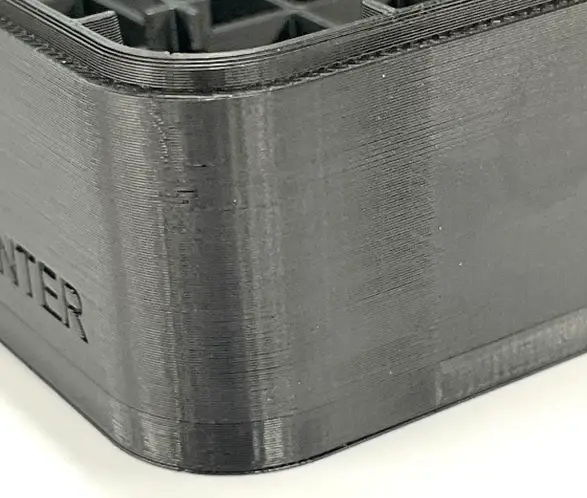 以下の画像はRaise3D Pro3でRaise3D PETG ESD材料で造形した造形物です。層の開始点に大きな溝が生じているのがわかるかと思います。