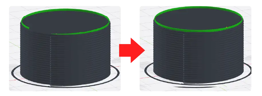 FDM(FFF)方式の造形物において、層の開始点に生じる継ぎ目は避けて通れないものです。3Dモデルの段階では存在しなかった継ぎ目は見た目が良くないばかりでなく、場合によっては強度などにも影響が生じます。