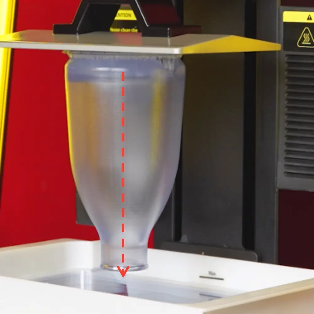 洗浄は全ての光造形で基本的なプロセスです。造形後のモデルに付着した余分なレジンを洗浄液*であるIPAまたはエタノールで取り除きます。洗浄方法は造形物を洗浄液に浸すか、自動洗浄機であるDF Washを使用し事前に設定した時間で洗浄を行います。