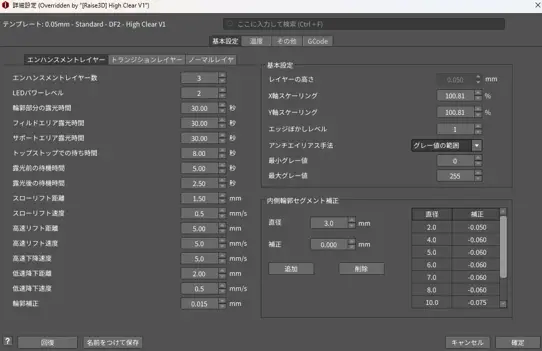 HighClearResinに限らずideaMakerの設定値はデフォルトテンプレートの使用を推奨します。