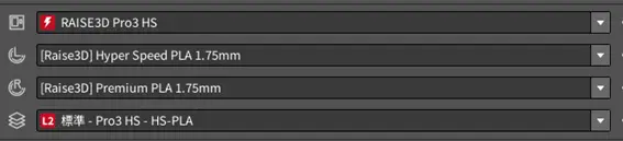 ideaMakerでは、高速造形モードに関連する情報が、テンプレート選択欄に赤いタグで表示されます。これらのタグは、ハイスピード造形を行う上で重要な意味を持ちます。