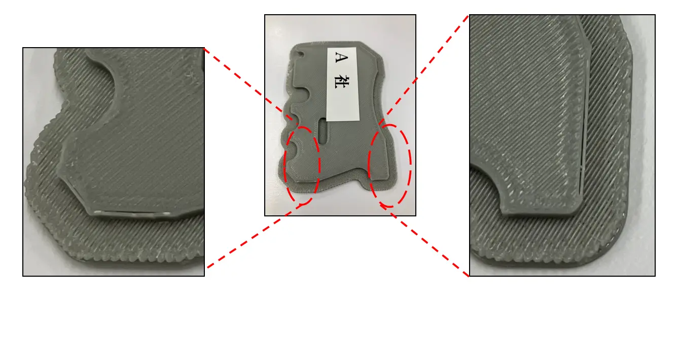 図3では、低価格フィラメントを使用して、造形した時に細かいディテールなど上手く行かなかった箇所を拡大して示しています。低価格フィラメントを使うと、特に鋭角や複雑なエッジなどの細かい形状がうまく形成されないことが多いです。これは主に、フィラメントの材質のばらつきや直径の不均一さにより、押出しが不安定になり層間接着が弱くなるためです。その結果、印刷物の品質に再現性がなく、複数回の印刷で同じ細かい仕上がりを安定して得ることができません。