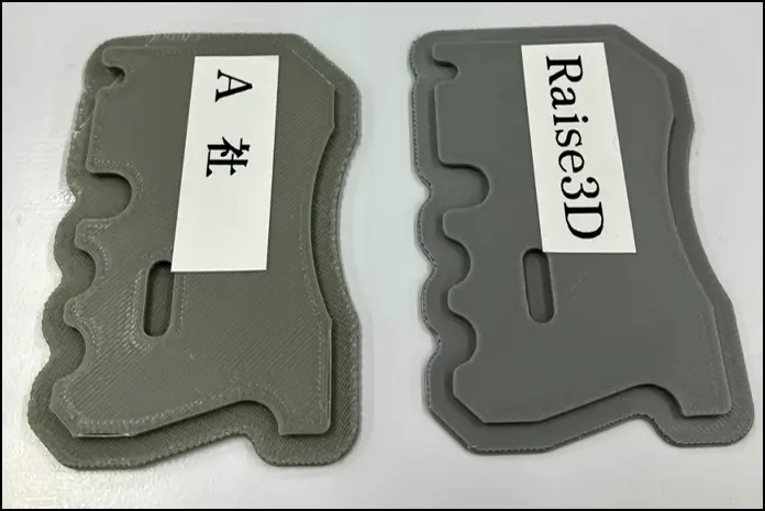 図2は、低価格フィラメントと弊社のRaise3Dプレミアムフィラメントを使用して印刷したサンプル品を示しています。