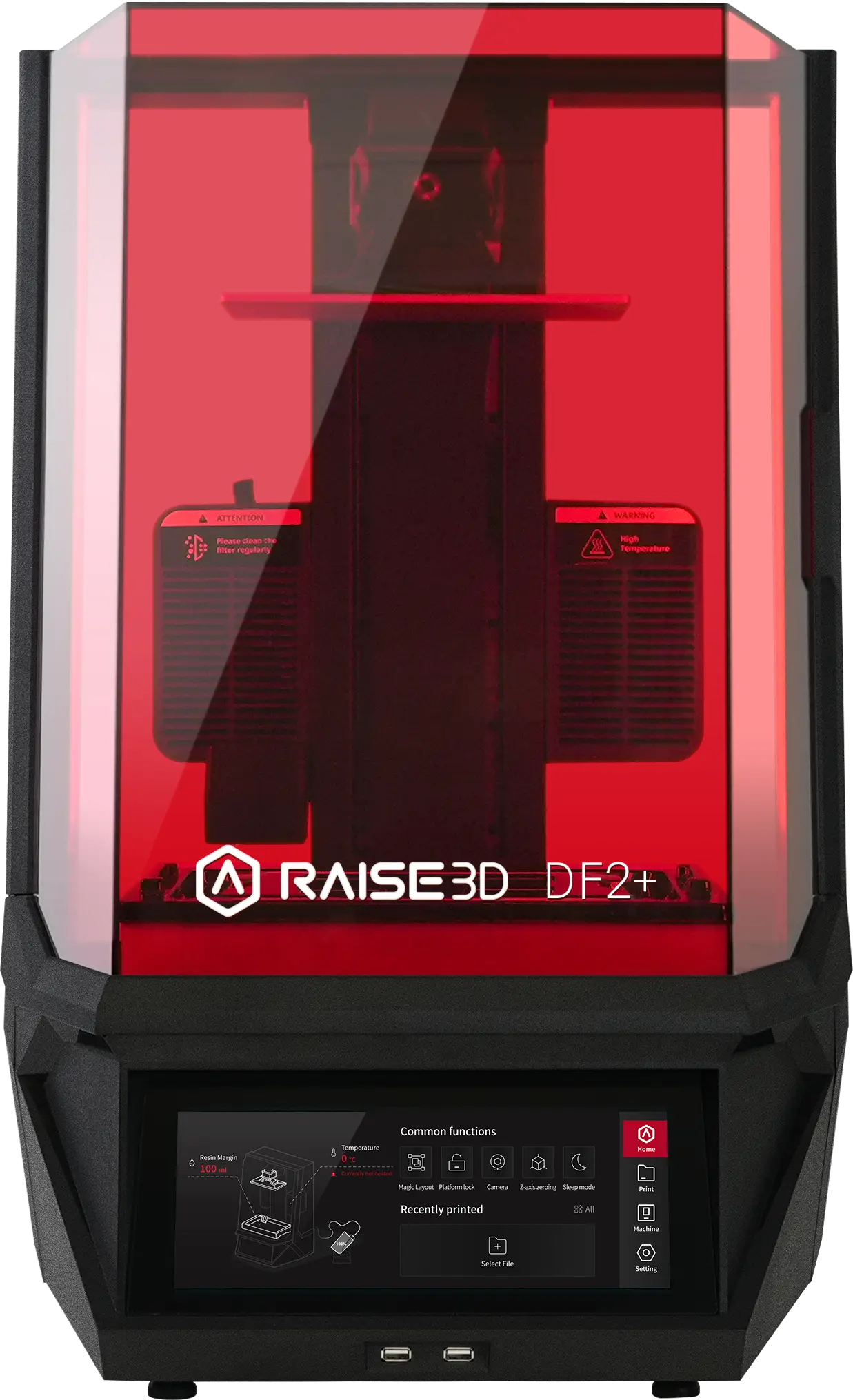優れたディティールの再現性やユーザビリティでご好評頂いているRaise3Dの光造形DLP方式3Dプリンター DF2。DF2+は搭載したDLP光源をアップグレードし、より高速な造形を可能にします。