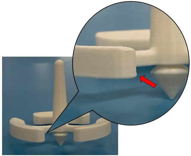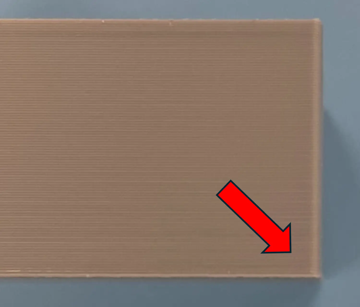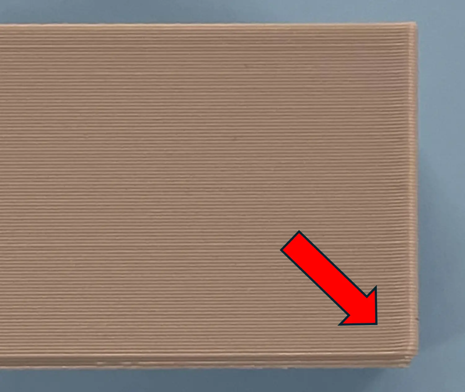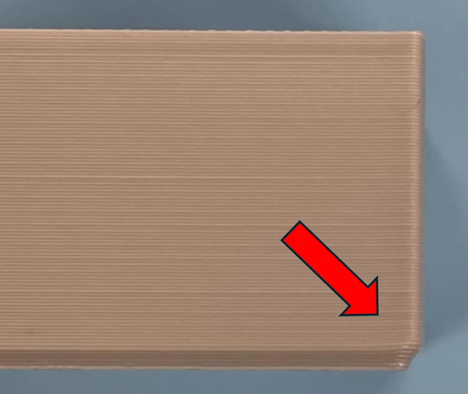 0mmでは1層目が形状よりはみ出てしまっています。見た目では分かりづらいですが、触っていくとバリを感じれます。これでは、もし嵌め合わせ部品だった場合に嵌めることができません。