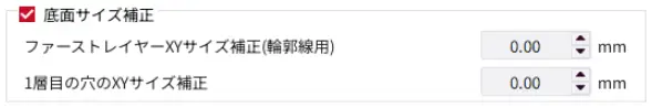 また、CADが無い場合でも、ideamakerで「底面サイズ補正」という機能があり1層目のサイズを縮小でき、同じような効果を得られますが値が大きいと2層目とのズレが顕著に出てしまう為補正しすぎには注意です。