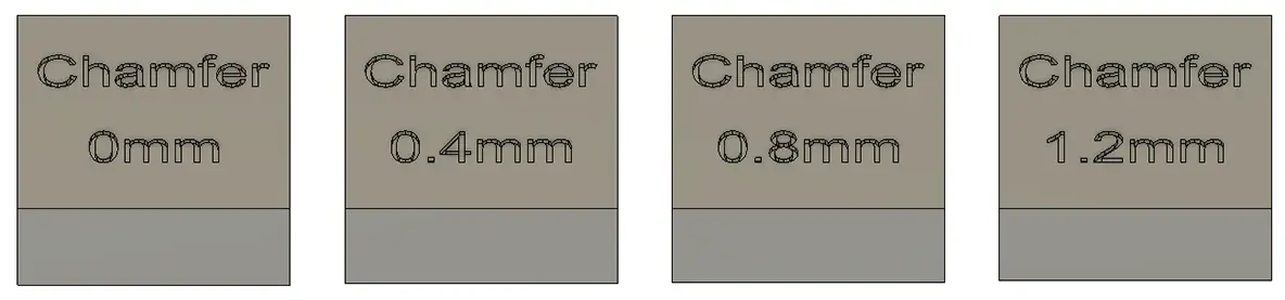 一つの目安として、今回は角部に対して「何もしない,0.4mm,0.8mm,1.2mm」の面取りを付けたデータで試してみます。