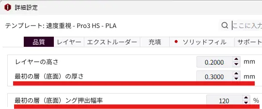 1層目の設定を無しにすることで、形状改善にはなりますが、それでは定着力が低下するので得策とは言えません。