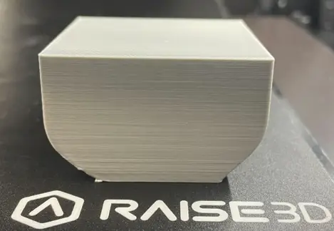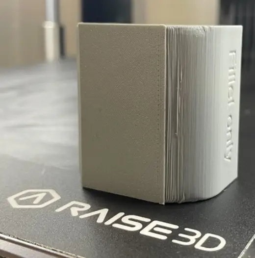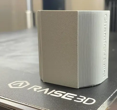 左側がフィレットのみ右側が面取りとフィレットです。45°の面から作られているので、安定して造形ができ、丸みがかかっているのが分かります。