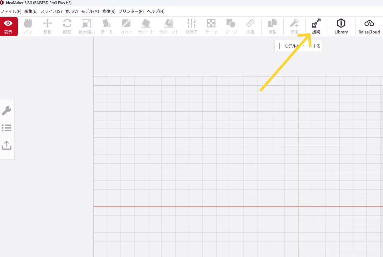 「ideaMaker」上で右上の「接続」をクリックして開きます。