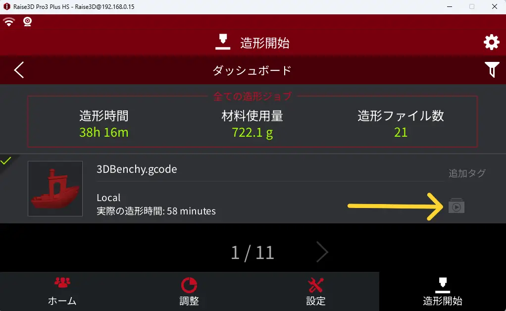 撮影したタイムラプス動画は、プリンターのタッチパネルまたはPCの「ideaMaker」から確認できます。