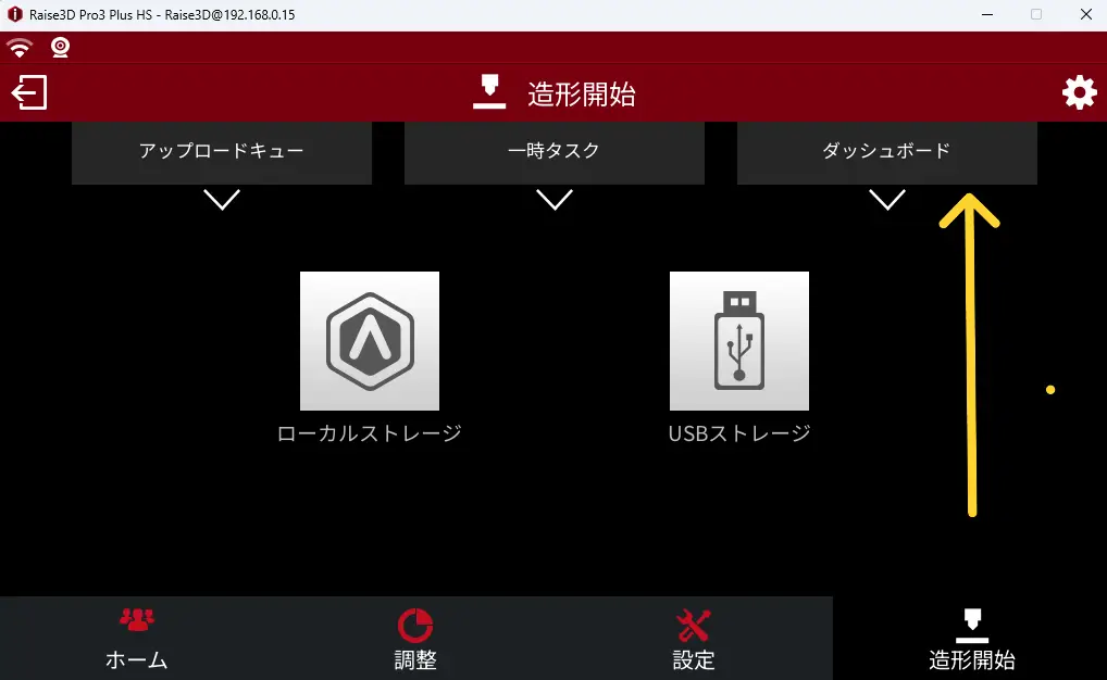 造形開始タブの中の「ダッシュボード」をクリックします。