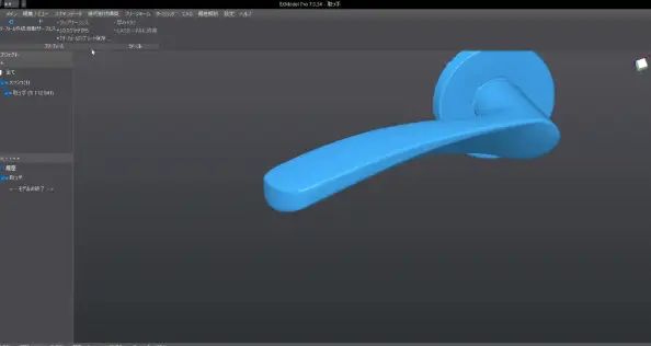 このデータを基にリバースエンジニアリングを行っていきます。用いるソフトは同じくShining3D社製のExmodelです。市場に存在するリバースエンジニアリングソフトの中でも、今回のような所謂「自由曲面形状の再現」を得意とするソフトウェアです。