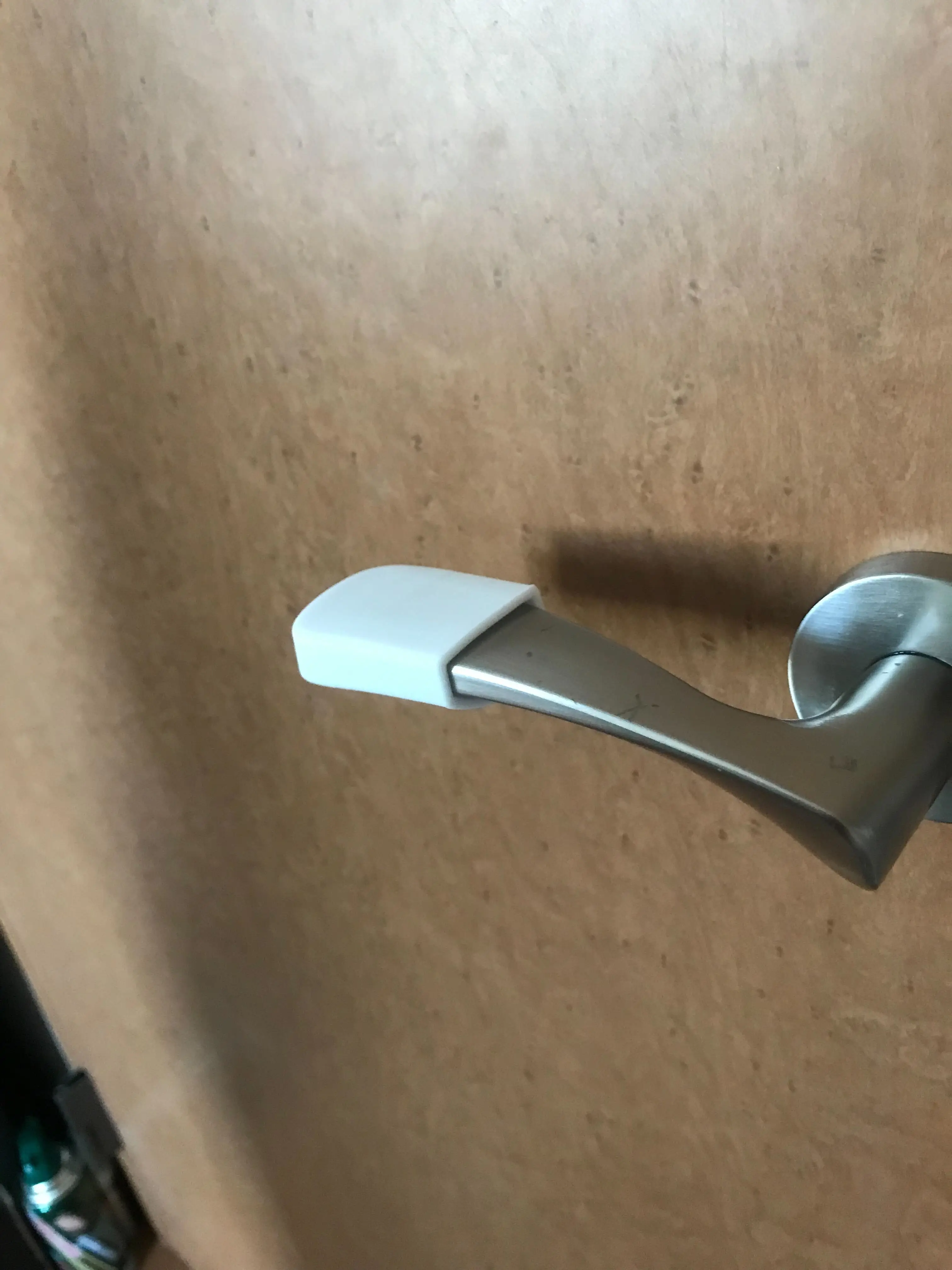 完成しました。早速ドアノブに取り付けてみましょう。CADでスリットの設計も行ったのでスムーズに装着できました。緩衝カバーの役目もしっかり果たせていて良好です。とはいえこれは試作品1弾です。ここからより良いデザインへの改善も容易です。