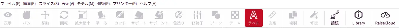 「ラベル機能」は、ideaMaker内で3Dモデル(STL、OBJファイルなど)の表面に文字を凹凸として追加できる機能です。