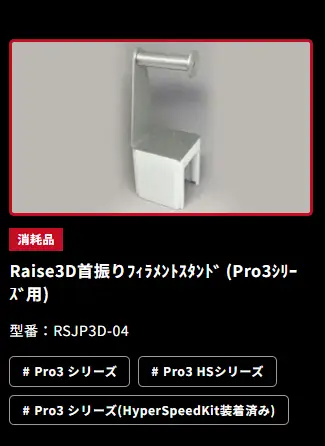 このため、純正オプションとして従来より販売している「首振りフィラメントスタンド」(型番:RSJP3D-04)を使用し摩擦抵抗を少なくすることで、造形中のノズル詰まりを軽減することが出来ます。