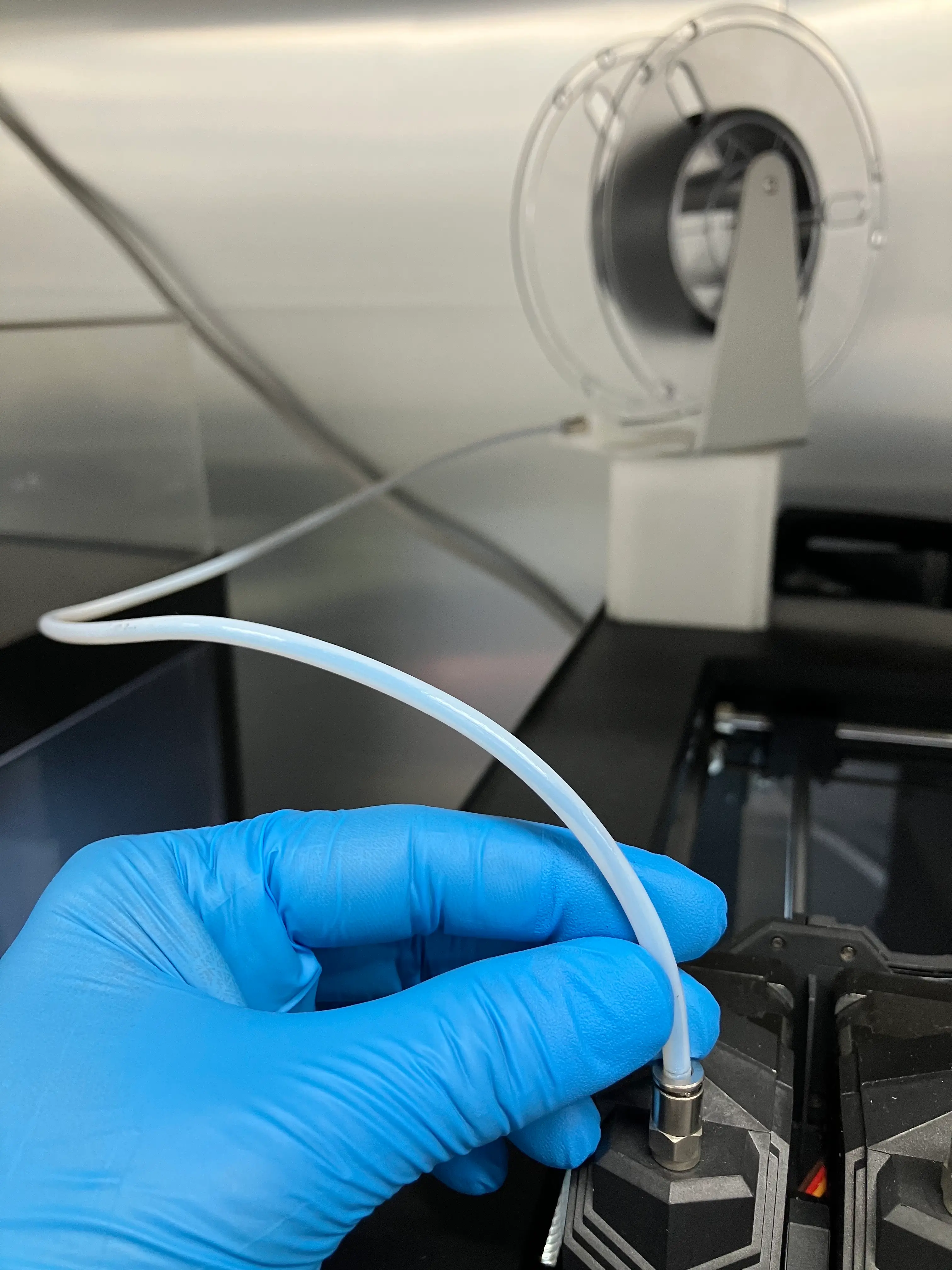 フレキシブルフィラメントのような柔らかいフィラメントの造形時には、他材料と異なり注意点がいくつか存在します。柔らかい材料に対して、なるべく大きな摩擦抵抗をかけることなくまっすぐとエクストルーダーに引き込まれなければなりません。