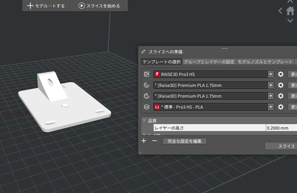 試作をスライスして造形準備