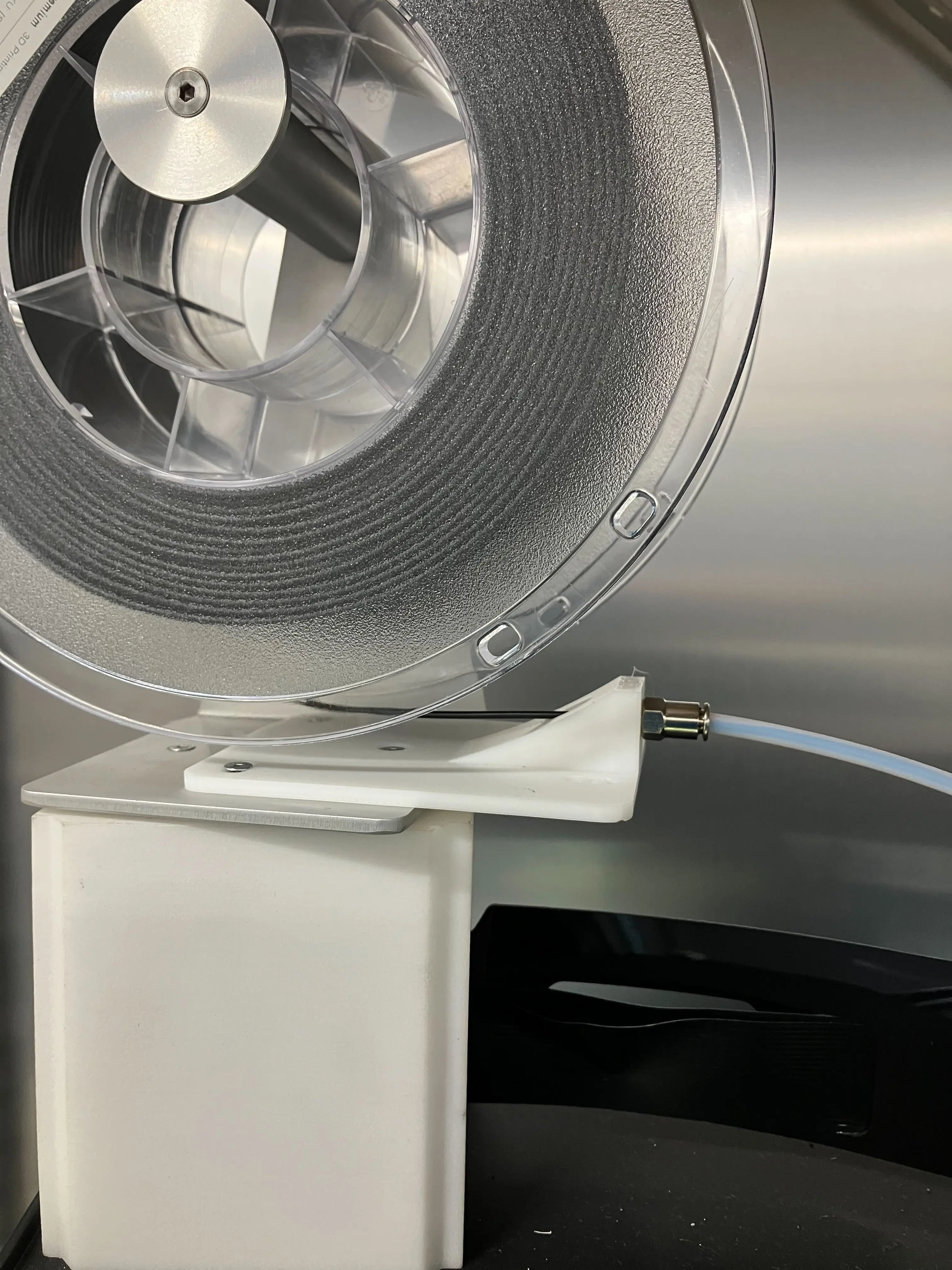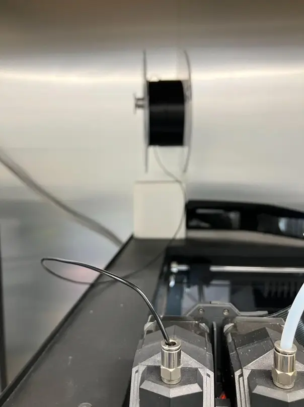 この改善部品は、垂れ下がりを防止するためにガイドチューブを取り付けられる構造を持ち、フィラメントの脱着時に邪魔にならないコンパクトな設計です。さらに、フィラメントスタンドを大がかりに改造することなくアタッチメントのように手軽に使用できる点も重視しました。