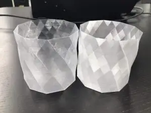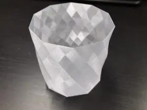 PETは透明性のあるクリア樹脂もある為、今回は透過性を見ることができるコップ形状を造形していきます。