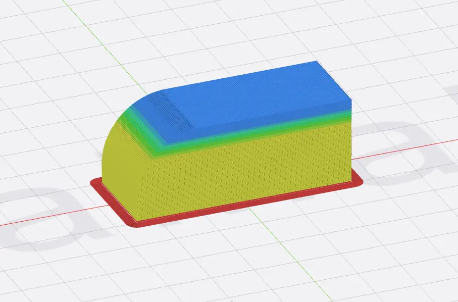 適応レイヤーの機能は、自動的にオーバーハングを検出し、傾斜が浅い部分は積層ピッチを荒く、傾斜がきつい部分は積層ピッチを細かくします。