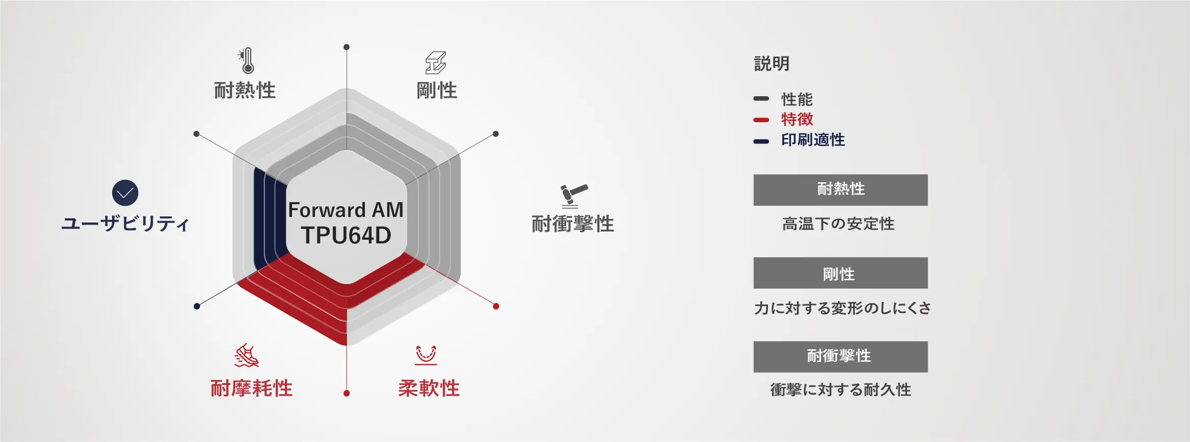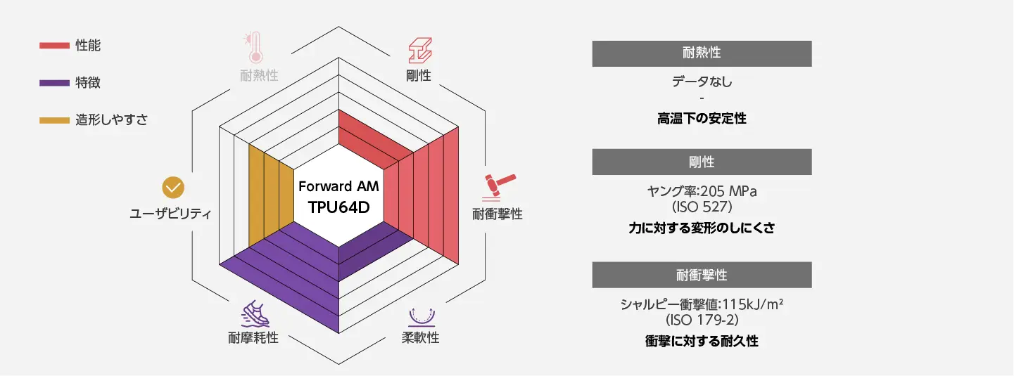 耐摩耗性 / 優れた低温柔軟性 / 耐衝撃性 / 良好な表面品質