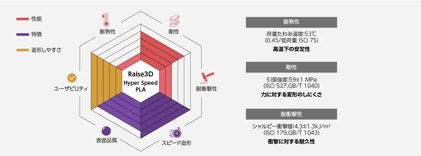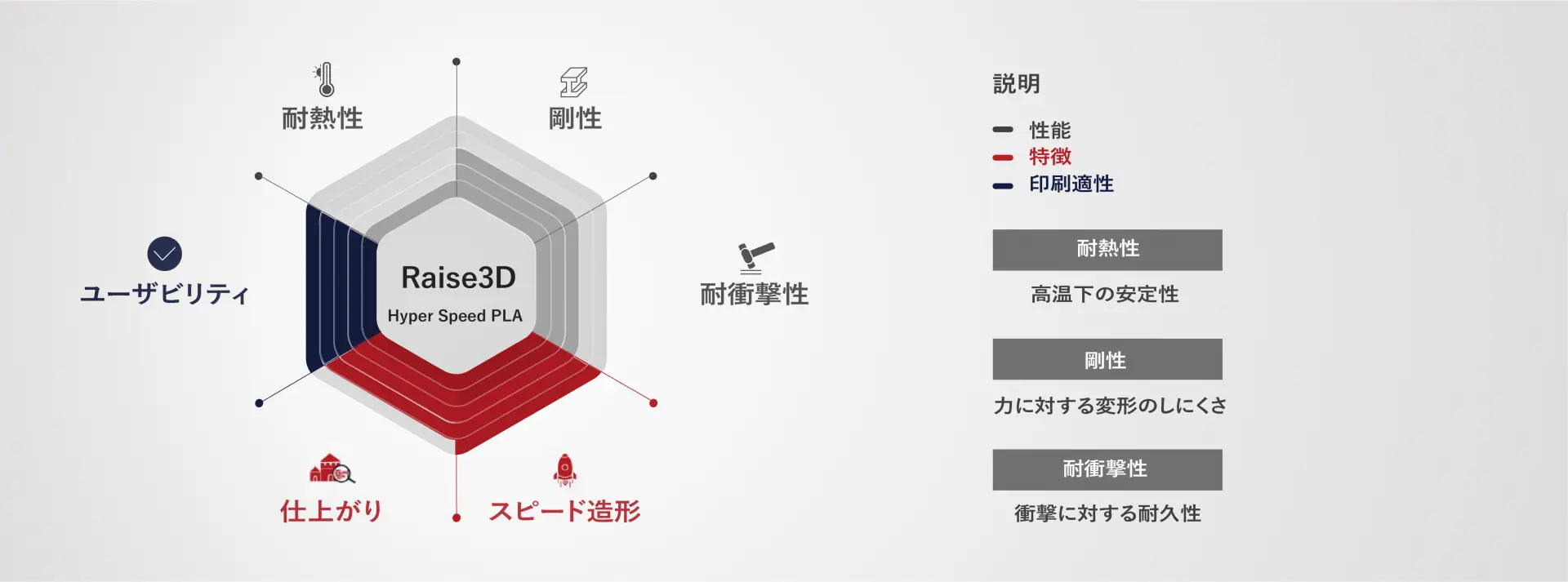 高速造形用に開発 / 高い流動性 / 低反り / 造形安定性