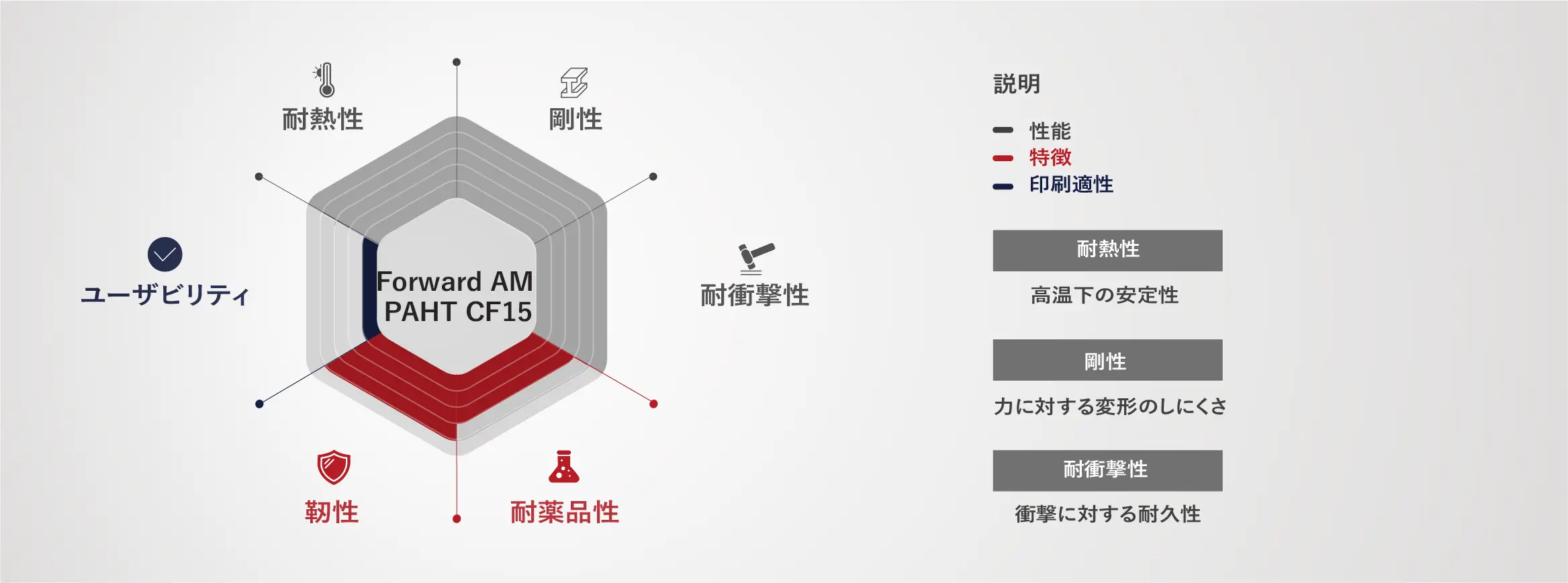 最高クラスの耐温性 / 高靭性 / 剛性 / 良好な表面品質 / 研磨性