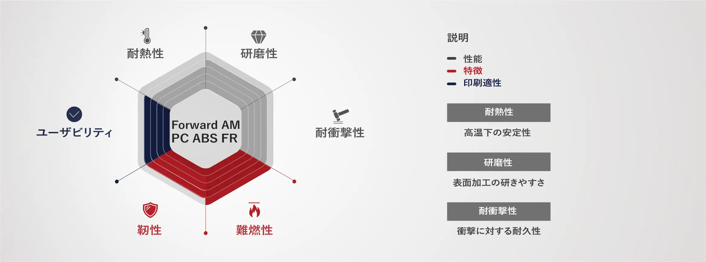 難燃性 / 靭性 / 耐熱性 / 耐衝撃性 / 後加工性