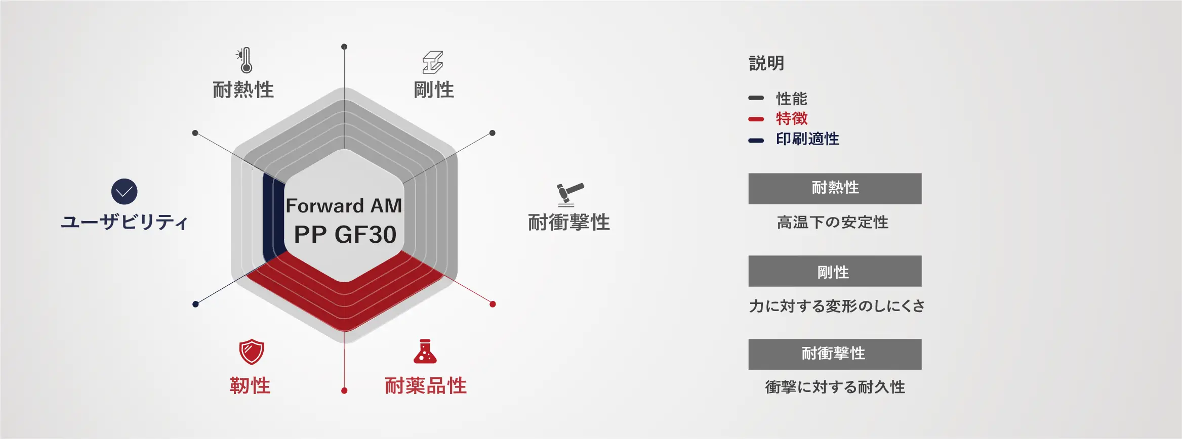 127℃の耐熱性(荷重たわみ温度) / 低吸湿性 / UV耐性